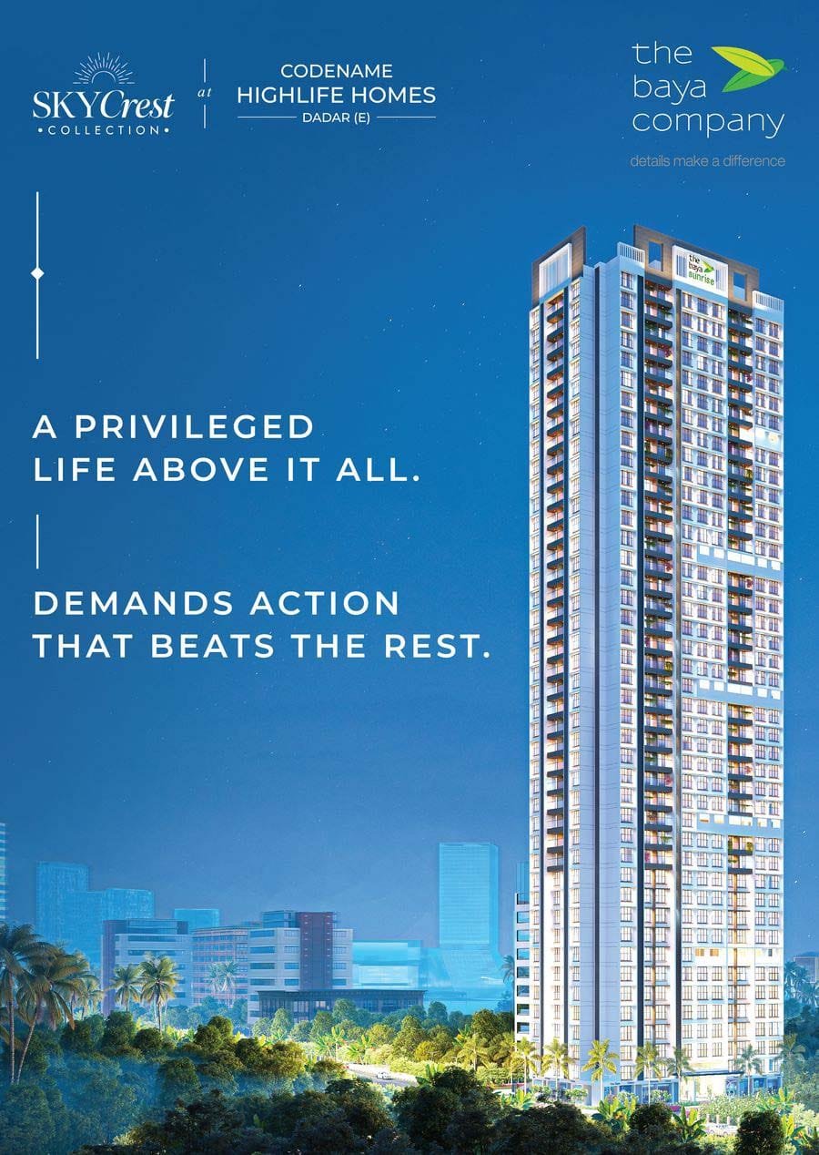 Introducing Codename Highlife Homes at The Baya SkyCrest, a premium residential project by The Baya Company, located on the prestigious G.D. Ambekar Road, opposite Wadala Telephone Exchange in Dadar East. This thoughtfully designed development offers modern 1 BHK and 2 BHK flats, each featuring private decks that enhance the living experience.